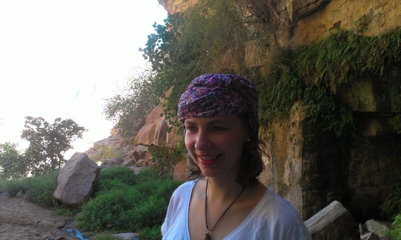 - Mit „Beduin – Style – Kopftuch“, noch nass vom Quellwasser und die perfekte Abkühlung!