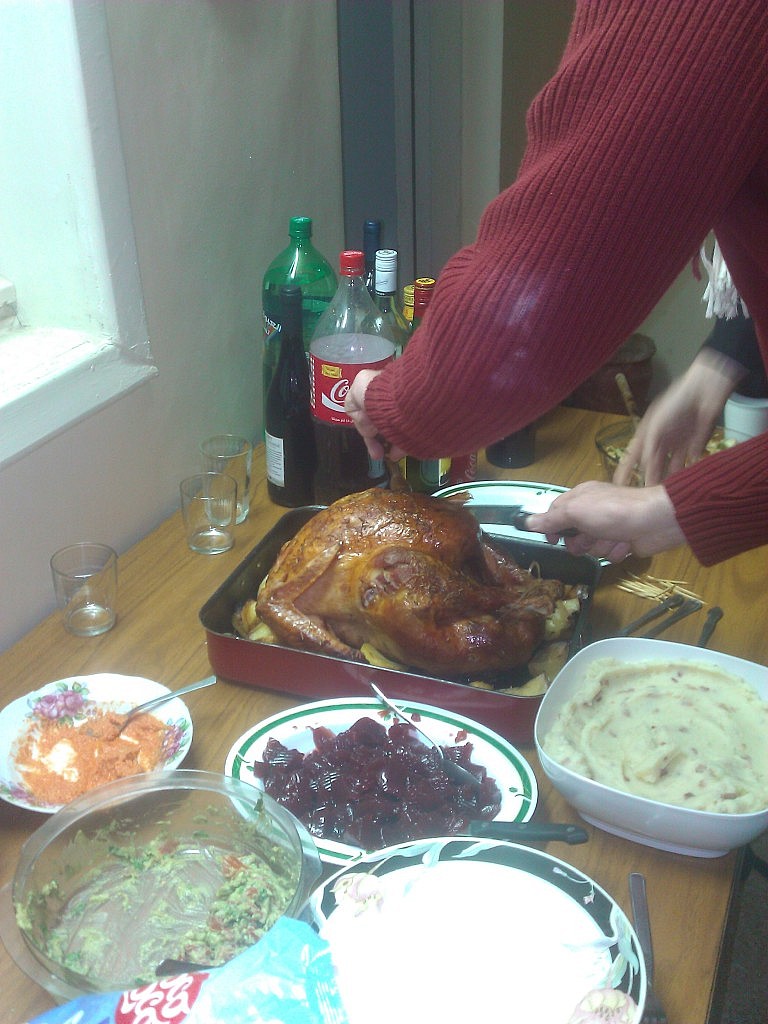 Entsprechend müde waren wir alle auf der Rückfahrt, und unser aller Wunsch war wohl eine heiße Dusche und ein bisschen relaxen am Abend. Wie die anderen das umgesetzt haben, kann ich nicht beurteilen; bei mir jedenfalls scheiterte dieser in jenem Augenblick wunderschön klingende Plan kläglich: Denn als ich meine Wohnung betrat, war groß Party angesagt – Thanksgiving!