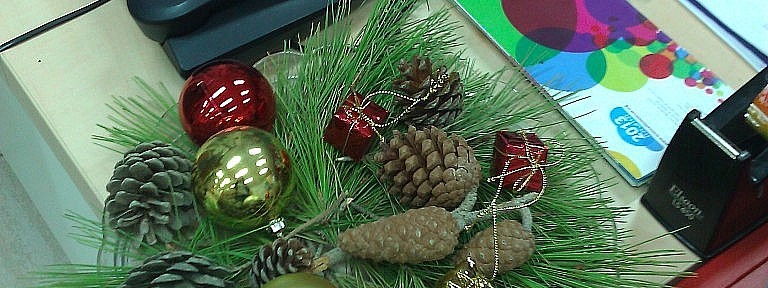 Inzwischen ist es kühl geworden. Ich sitze vor meinem kleinen elektrischen Heizer und höre auf Antenne Bayern die ersten Weihnachtslieder. Und doch hat uns der erste Advent ziemlich überrascht: Letzte Woche konnte man mittags noch im T-Shirt draußen sitzen und fast jeden Tag ist der Himmel strahlend blau. Das Wetter passt also besser in den frühen Herbst als in die Weihnachtszeit, aber im Goethe-Institut wurde heute trotzdem die passende Deko hervorgekramt. Genauer gesagt: Ich hatte die zweifelhafte Ehre, in unserer Garage herumzuklettern und Lametta aus Plastiktüten herauszuzerren.