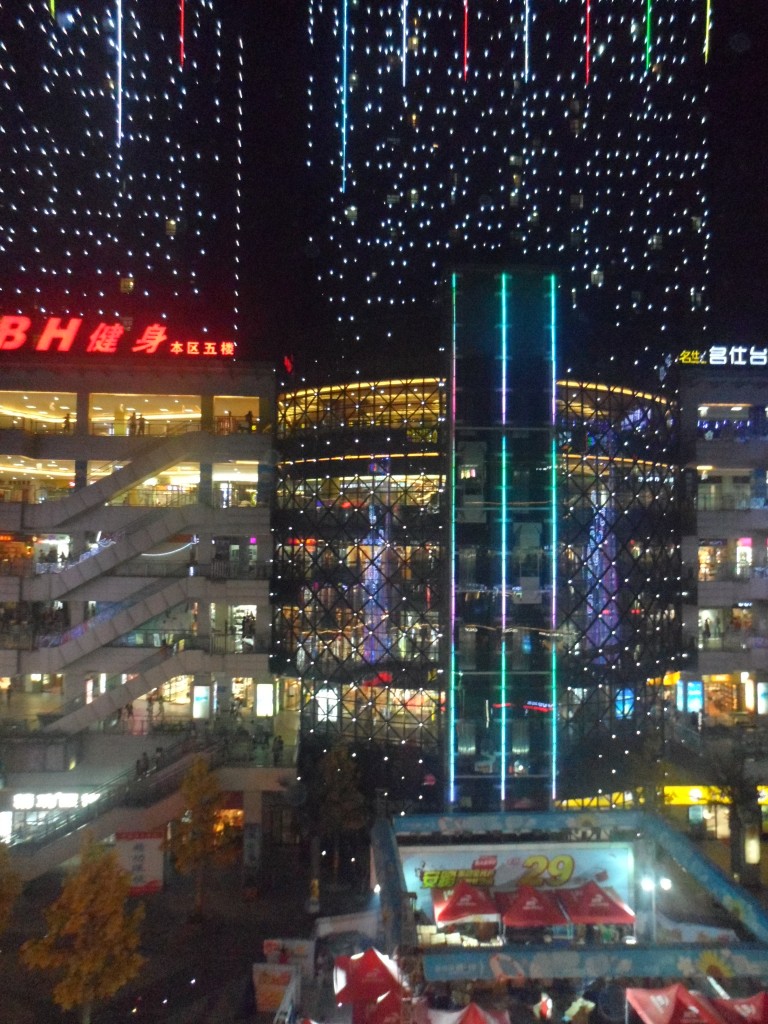 Gelegenheit, mich an diese eher offensiven Marketing-Methoden zu gewöhnen, bot sich mir dann gleich am folgenden Tag. Freitagabend hatte ich mich nämlich, sozusagen als Belohnung für die letzten drei Unterrichtsstunden der Woche mit Anna und ihrer Freundin zum nächsten Shoppingversuch verabredet. Anna werde ich übrigens ab jetzt bei ihrem richtigen chinesischen Namen, Jiao Jiao, nennen, denn den habe ich mir trotz Datenengpass in meinem Namensgedächtnis endlich gemerkt. Jiao Jiao und Hui Su nahmen mich also zu einem Gebäude mit, dass den Namen Shopping-Mall eigentlich gar nicht mehr verdient. Passender wäre eher Perfektes Powershopping-Paradies und weil ich ja auf prägnante Abkürzungen stehe, werde ich es fortan mit der Bezeichnung PPP betiteln.