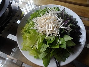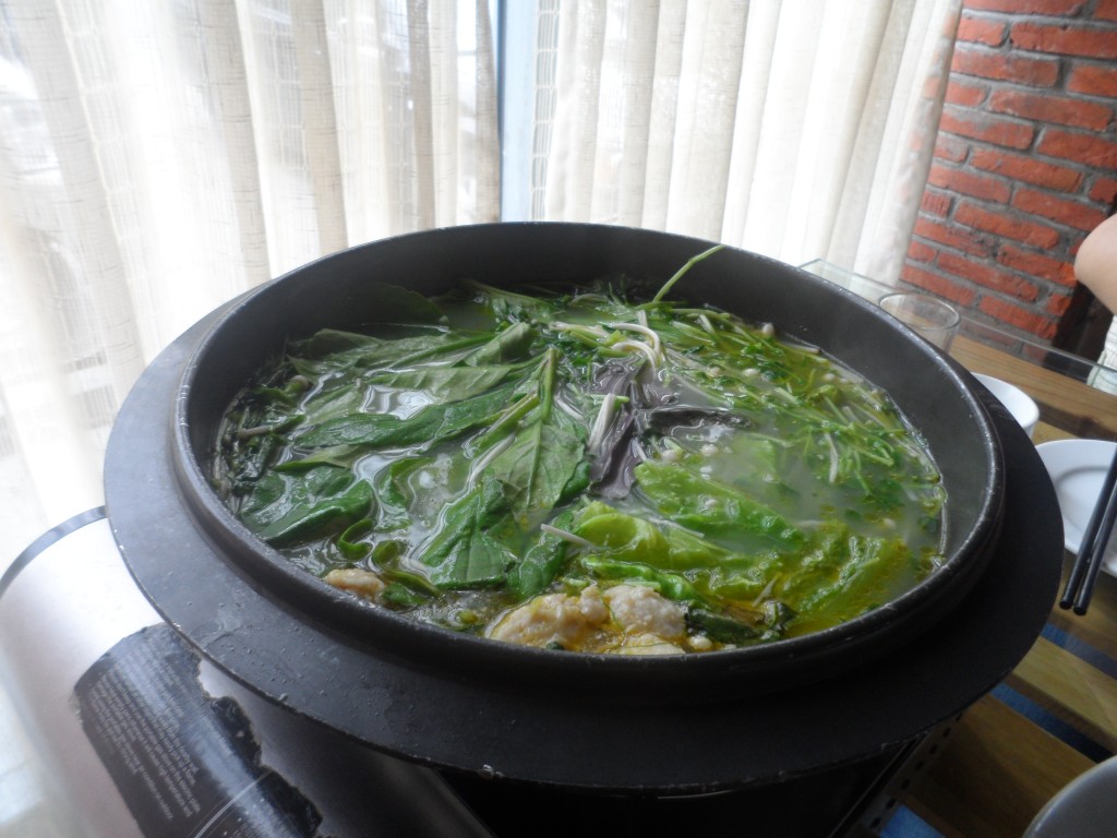 Sei’s drum, sehr gesund habe ich mich trotzdem ernährt. Die andere Spezialität, die man uns hier servierte, bestand nämlich aus einem äußerst dekorativ angerichteten Haufen Grünzeug, den ich zuerst für eine etwas übertrieben geratene Tischdekoration hielt. Als dann aber ein großer, brodelnder Suppentopf vor meiner Langnase platziert wurde, ging mir allmählich ein Licht auf. Die Kräuter und Pilze warf man nämlich in bestimmten Abständen in ebenjenen Kessel, wodurch allmählich ein wohlschmeckender Sud entstand. Das Ganze erinnerte zwar ein bisschen an Zaubertrankunterricht in Hogwarts, gestaltete sich jedoch um einiges amüsanter, weil mir meine Lehrerinnen bei einem Fehler selbstverständlich nicht gleich die Speisekarte auf den Kopf donnerten.
