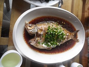 Neuer Tag, neue Spezialitätenverköstigung. Mit dem gleichen Ensemble ging es am Samstag gleich mittags weiter zum nächsten Restaurant in der Nähe des East Lakes. Mittlerweile habt ihr euch sicher daran gewöhnt, dass ich gerne mal übers Essen schreibe, da dies zweifelsohne auch beziehungsweise vor allem in China zu meinen Lieblingsbeschäftigungen zählt. Deshalb möchte ich abermals etwas mehr ins Detail gehen. Im Restaurant Nr. 3 des vergangenen Wochenendes ließen sich gleich zwei lokale Besonderheiten genießen. Einerseits probierte ich den karpfengroßen Wuchang Yu, ein Fisch, der seinen Namen von dem Distrikt hat, in dem ich wohne. Mir ist zwar schleierhaft, wie in der giftig grünen Brühe, die am Fenster entlang floss, überhaupt irgendetwas überleben kann, aber seine übelriechende Herkunft merkte man dem Tierchen in keinster Weise an. Das gute Stück schmeckte sogar überraschend frisch und würzig. Ich hoffe allerdings, dass die Würze von der Soße stammt, in der er gebraten wurde und nicht von der, in der er vermutlich aufgewachsen ist.