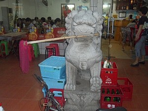 Den Rest des Abends hätte ich am liebsten mit Verdauen verbracht, aber Jiao Jioa und Hui Su hatten bereits andere Pläne. Weil es unter Chinesen sehr beliebt ist, sich gegenseitig kleine Präsente zu machen, wurde mir alsbald bewusst, wofür man die hundert Geschenkartikelshops brauchte. Die beiden Damen wollten mir nämlich unter allen Umständen noch etwas Nettes kaufen, was dann bedeutete, einen Ramschladen nach dem anderen abzuklappern. Am Ende kehrte durfte ich schließlich mit einem Stoß hübscher Postkarten und zwei Sprichwort-Hölzern von dannen ziehen.