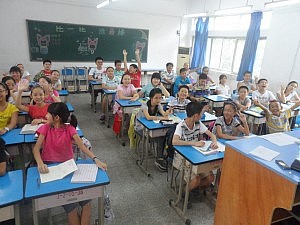Vor mir freut sitzt die größte Klasse, die ich je gesehen habe. Über sechzig Kinder scheinen sich mächtig darüber zu freuen, dass ich mir Zeit für sie genommen habe und es herrscht beinahe Festival-Stimmung im Saal, vor allem was die Beschallung betrifft. Einige Lehrer unterrichten hier tatsächlich durch ein Mikrofon, aber da ich kein solches besitze, hoffe ich, dass ich meinen Stimmbändern später einen guten Tee gönnen kann und stelle mich kurz brüllenderweise in feinstem Chinglisch vor. Danach beginnt, wie üblich, eine ausführliche Fragerunde über meine Lieblingsfarben, Lieblingstiere, mein liebstes Essen in Wuhan, meine Hobbies, meine Freunde in Deutschland, und natürlich auch darüber, ob ich eine Freundin habe oder vielleicht sogar schon verheiratet bin. Bevor es aber dann zu sehr ins Detail geht, bricht die Lehrerin das Kreuzverhör ab und ruft stattdessen: „Who wants to take some pictures with Mr. Kai?“ Lieber Himmel, das kann ja lustig werden.