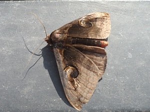 Eine Motte mit dem Yin Yang-Symbol auf den Flügeln -zwar nicht sonderlich bunt, aber besser als eine Skorpionswanze
