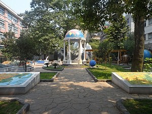 Weil mein Magen ohnehin knurrt, klinke ich mich flugs aus dem Gespräch aus und entwische mit einer der Englischlehrerinnen und der Spanischlehrerin aus dem Büro. Aber halt, wo gehen die denn hin? Etwa zur Kantine? Oh nein, nicht schon wieder! Memo an mich selbst: ich sollte langsam anfangen, die Essensvokabeln zu verinnerlichen, damit ich endlich ohne Zufallstreffersystem in einem Restaurant bestellen kann. Denn das Essen in der Kantine ist zwar billig und meist wohlschmeckend, jedoch zu allen Tageszeiten und an jedem Tag der Woche gleich. Naja, wenigstens bin ich dort in netter Gesellschaft. Als wir uns mit unserem üblichen Haufen Reis garniert mit drei anderen Beilagen nach Wahl an einen freien Tisch gesetzt haben, gesellt sich auf einmal ein älterer Mann zu uns und beginnt fröhlich, mich auf Chinesisch zuzutexten. Zum Glück stehen mir meine kostenlosen Dolmetscher tatkräftig zur Seite, sodass ich schnell herausfinde, dass der nette Herr der Großvater eines Jungen an der Mittelschule ist und gerade bei diesem nach dem Rechten sieht. Dass die Verwandten von Schülern von Zeit zu Zeit hier vorbeischauen, stellt übrigens keine Ausnahmesituation dar. Sie helfen ihren Zöglingen beim Zimmerputz und beim Wäschemachen oder befreien sie vom eintönigen Kantineneinerlei. Wie sich weiterhin herausstellt, findet Opa neben meinen Reisegründen vor allem meine Nase äußerst interessant. Nachdem ich ihm schließlich versichert habe, dass sie mir im Winter für gewöhnlich nicht abfriert, zieht er beruhigt von dannen und wir machen uns auf den Weg zum Büro.