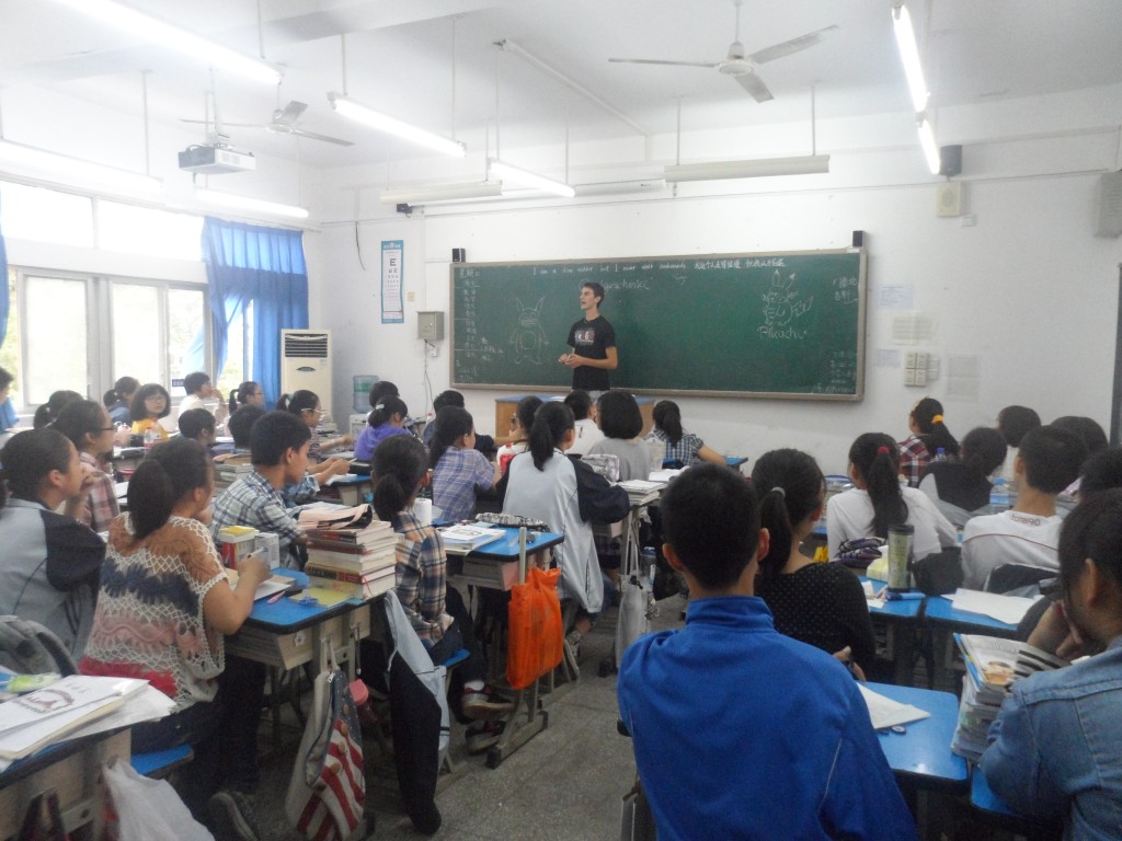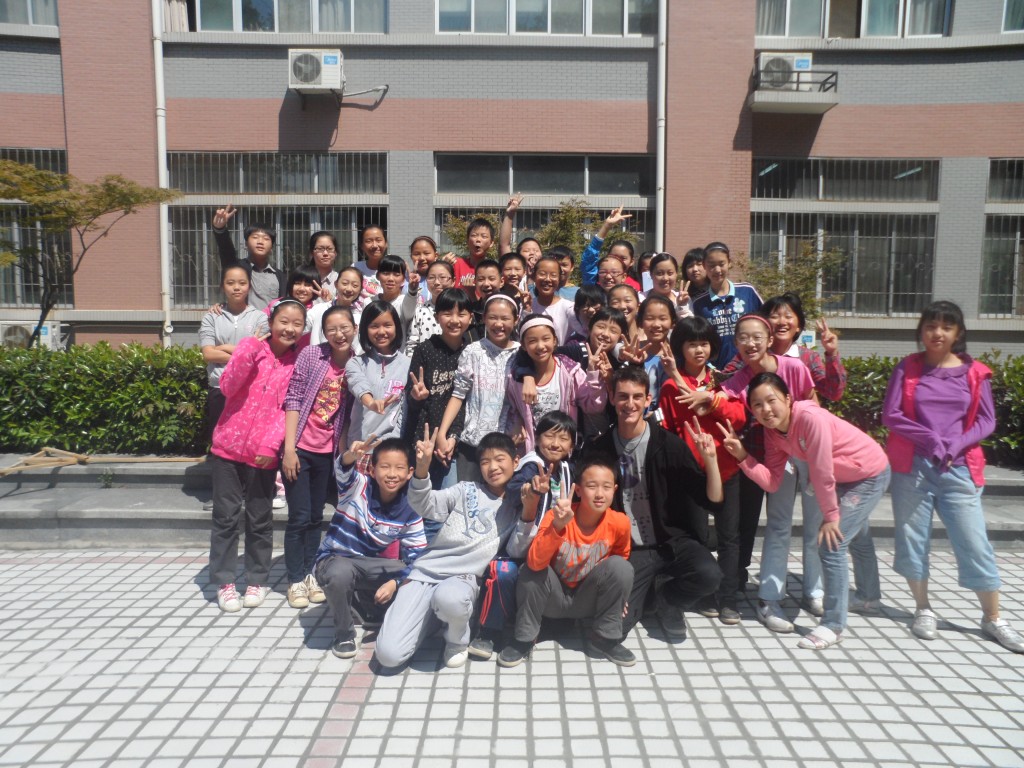 Vor mir freut sitzt die größte Klasse, die ich je gesehen habe. Über sechzig Kinder scheinen sich mächtig darüber zu freuen, dass ich mir Zeit für sie genommen habe und es herrscht beinahe Festival-Stimmung im Saal, vor allem was die Beschallung betrifft. Einige Lehrer unterrichten hier tatsächlich durch ein Mikrofon, aber da ich kein solches besitze, hoffe ich, dass ich meinen Stimmbändern später einen guten Tee gönnen kann und stelle mich kurz brüllenderweise in feinstem Chinglisch vor. Danach beginnt, wie üblich, eine ausführliche Fragerunde über meine Lieblingsfarben, Lieblingstiere, mein liebstes Essen in Wuhan, meine Hobbies, meine Freunde in Deutschland, und natürlich auch darüber, ob ich eine Freundin habe oder vielleicht sogar schon verheiratet bin. Bevor es aber dann zu sehr ins Detail geht, bricht die Lehrerin das Kreuzverhör ab und ruft stattdessen: „Who wants to take some pictures with Mr. Kai?“ Lieber Himmel, das kann ja lustig werden.