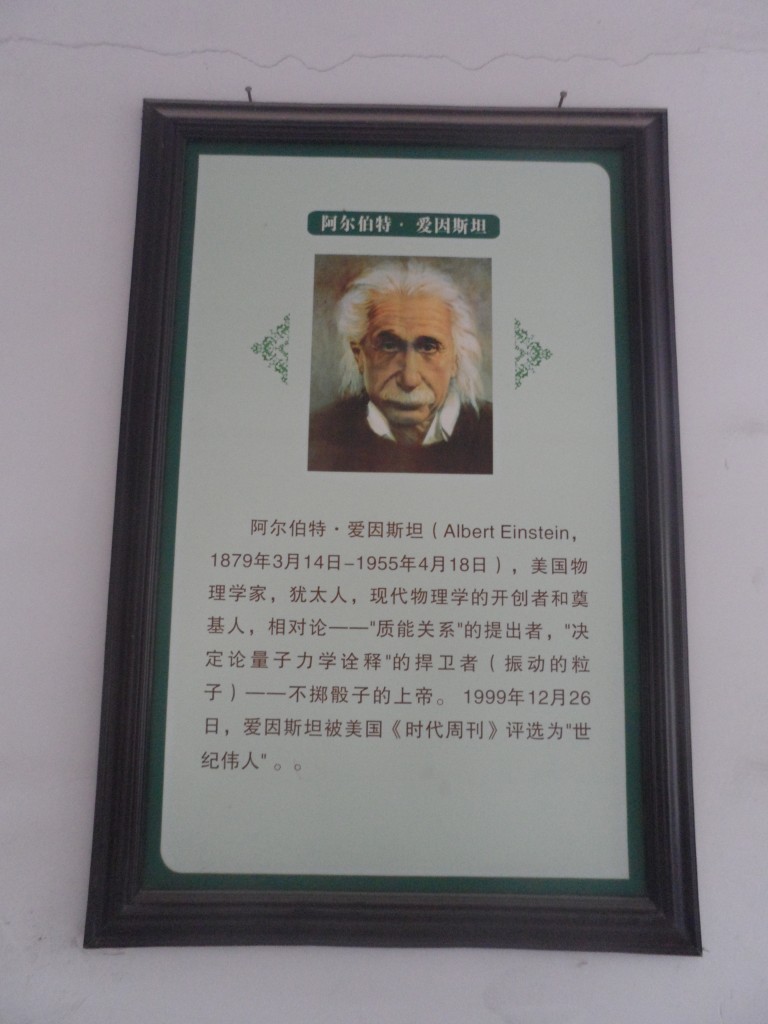 Zum Glück klingelt es bald zur nächsten Stunde, wodurch ich im letzten Moment einer direkten Konfrontation mit meinem kleinen Lieblingsdämon zu entgehe. Eilig packe ich meine Unterrichtsmaterialien zusammen und spurte Yin Hui, der Deutschlehrerin in der achten Klasse, aus dem Lehrerzimmer hinterher. Wenn etwas in der Zeit, in der ich nun schon hier bin, unverändert blieb, dann definitiv die Tatsache, dass ich immer noch keine Ahnung habe, wo ich gerade hingehe. Warum muss denn auch jeder Gang genau gleichaussehen mit Ausnahme der Portraits berühmter Personen an den Wänden? Oh, und woher kommt denn dieses furchtbare Bild von Albert Einstein? Das hab ich ja noch nie gesehen! Egal, darüber kann ich mir nach dem Unterricht weiter Gedanken machen. Jetzt muss ich mich erst mal darauf konzentrieren, vor den Schülern eine gute Figur abzugeben.