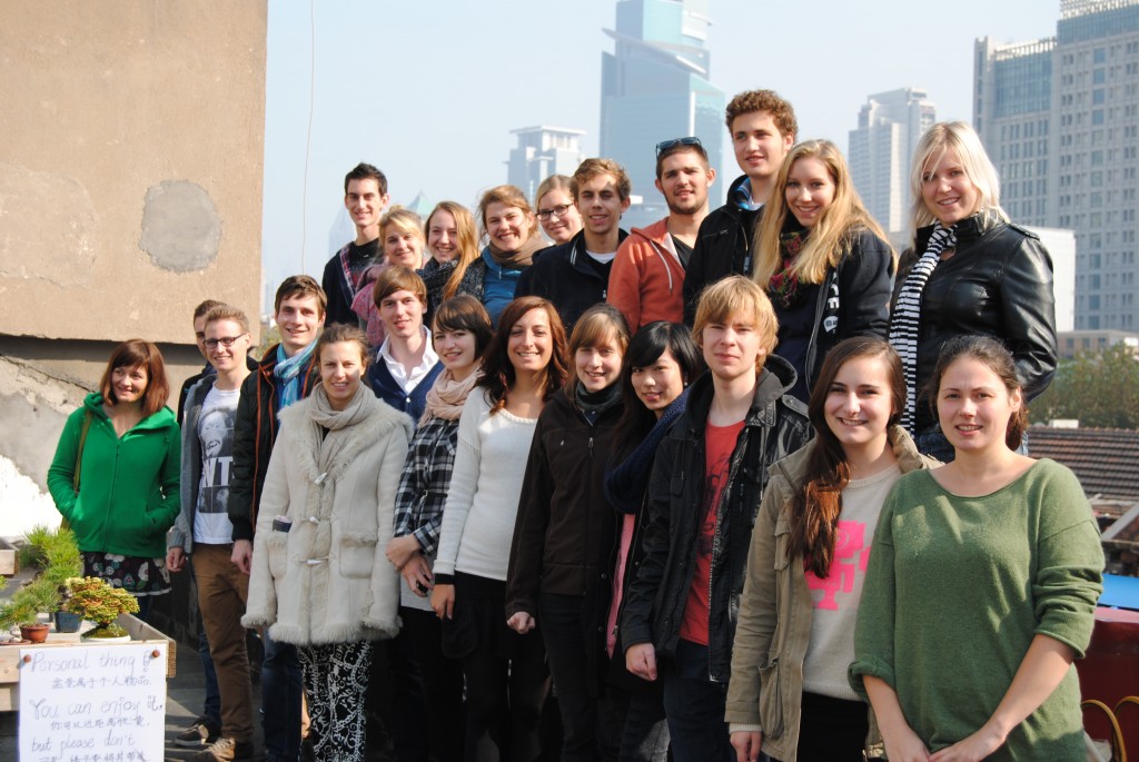 Einen fröhlichen Anfang des Zwischenseminars gab es allerdings auf der Dachterrasse des Hostels sogar kostenlos. Die Wiedersehensfreude in Hangzhou war ja bereits groß gewesen, aber nun sah man einfach so viele neue Gesichter auf einmal, dass man aus dem Erzählen gar nicht mehr herauskam. War die Shanghai-Crew wieder gut in der Heimatstadt angekommen? Mit welchen Gschichtle wartete meine Mitschwäbin Theresa auf? Was hatte Homezone-Homie Jeanne in der Zwischenzeit erlebt? Zündete Luisa ihre liebevoll als „Nuttenstängel“ bezeichneten Zigaretten immer noch mit dem Flammenwerfer-Feuerzeug an, das ich ihr in Hangzhou überlassen hatte? Und was trieb eigentlich Carl-Jan beim Goethe-Institut in Shanghai? Fragen über Fragen, die man am liebsten alle gleichzeitig ausdiskutieren wollte.