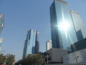 Dort gelang es Shanghai wieder einmal, uns sprichwörtlich kleinzukriegen. Egal, in welche Richtung man den Hals reckte, überall streckten sich Wolkenkratzer in den Abendhimmel. Eine Science-Fiction-Rakete, riesige griechische Säulenbauten, ein Dach in Form einer geöffneten Lotusblüte, chinesische Tempelarchitektur gemischt mit moderner Glasfassaden-Bauweise. Man schien den Architekten wirklich jegliche künstlerische Freiheit zugesprochen zu haben – solange es nur möglichst umwerfend und prestigeträchtig aussah! Selbstverständlich kamen wir nicht umhin, auf eines dieser Prestigeprojekte zu steigen. Wenn schon, denn schon, lautete die Devise und so wählten wir dafür das Word Financial Center, das vierthöchste Gebäude der Welt und das höchste, das es in China zu finden gibt. Zumindest bis der Nachbarturm fertiggestellt ist, der China endlich wieder den Rang als Nation mit dem höchsten Wolkenkratzer einbringen soll.