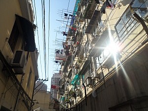 Als wir jedoch in die enge Seitenstraße einbogen, in der sich unser Hostel befand, hatte ich plötzlich das Gefühl, dass sich Shanghai einen Spaß mit uns erlauben wollte. Über uns spannten sich auf mehreren Ebenen mit einem Mal nicht mehr Wolkenkratzer, sondern voll behängte Wäscheleinen. Im Hinterhof eines Restaurants hackte jemand auf einen toten Fisch ein und ein Schild verwies auf eine mehr als dubiose Fußmassage. Solche Örtlichkeiten sollte man genauso wie bestimmte Friseursalons besser meiden, weil sich hinter ihnen eigentlich Bordelle verstecken. Prostitution ist in China nämlich offiziell verboten, aber so manchem ahnungslosen Ausländer wurde schon nach dem Haarschnitt gegen Bezahlung ein „Happy End“ angeboten.