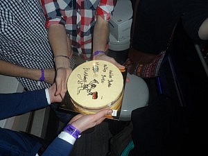 Kaum auf festem Boden angekommen, konnte das Programm munter weitergehen. Franzi und Maurice holten den mittlerweile fertiggebackenen Hamster in seinem Karton ab und los ging es auf die Suche nach einer Bar, in der wir in Philipps Geburtstag feiern würden. Nach einigem Hin und Her erwählten wir schließlich das „Soho“ zur Location des Abends, primär weil man dort zur Flatrateparty lud. Auch wenn sich die Bedienungen nicht gerade begeistert von ihren einzigen Flatrate-Nervensägen zeigten, verbrachten wir eine sehr witzige Zeit, bis wir schließlich um Mitternacht Philipps Geburtstagslied anstimmten. Und nachdem jeder herzlich gratuliert hatte, durfte Philipp endlich seinen Hamster auspacken.
