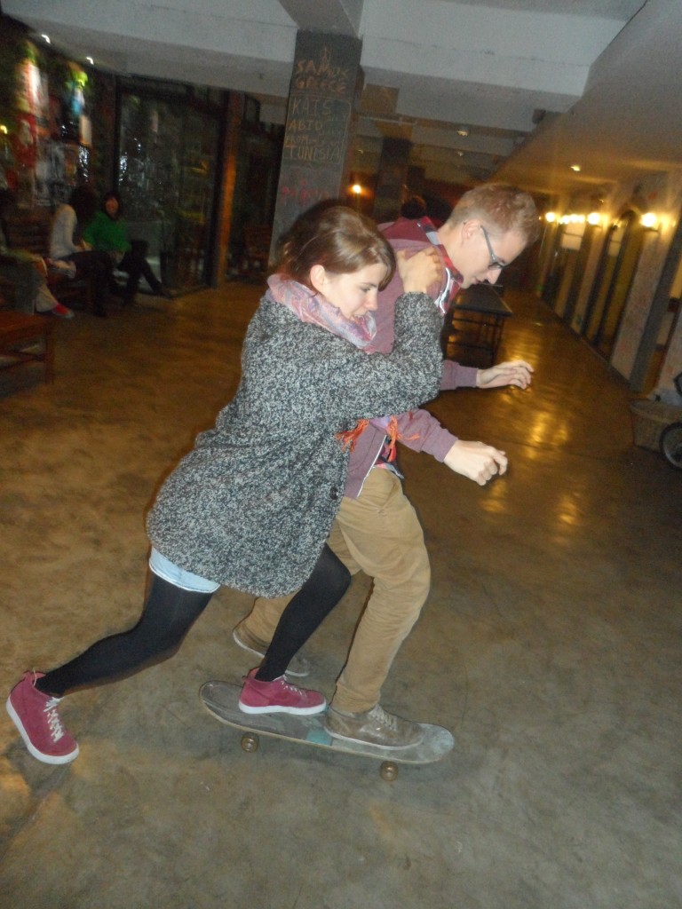 Sehr ausgelassen und ungewohnt sportlich gestalteten sich außerdem unsere Aktivitäten in den Pausen oder an eher ruhigen Abenden, wo man zwischen Skateboard-Training, Tischkickern, Billard oder Mäxle spielen wählen konnte. Obwohl ich in allen vier Disziplinen gleichermaßen unfähig, äh ungeübt bin, entwickelte sich doch die letzte zu meinem persönlichen Favoriten. Zwar entstand schnell ein Running-Gag aus der Frage, ob nun Lien, Luisa oder ich den Ball zuerst verpatzten, doch nach viel Übung und mit viel Glück landete ich sogar irgendwann im Finale. Mit dem epischen Zweikampf zwischen den beiden Mädels konnte ich damit aber trotzdem nicht mithalten.
