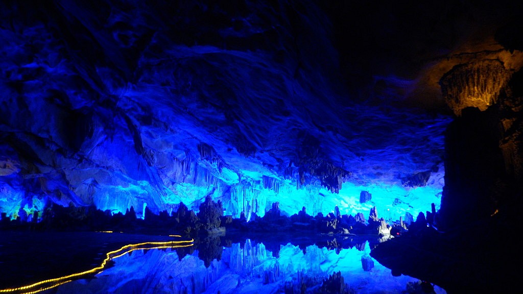 Zu jeder imposanten Auftürmung von Kalkstein gab es zur zusätzlichen Erheiterung noch anregende Geschichtchen und Betitelungen zu verkünden, so dass man an Schneemännern, prähistorischen Wäldern und einem „Tausendfüßler, der vor einem magischen Spiegel zurückschreckt“ vorüberging. Der Höhepunkt der Expedition folgte schließlich, als der Gang in einen riesigen natürlichen Saal mündete, wieder komplett ausgestattet mit dem poetischen Titel „Crystal Palace of the Dragon King“. Während man dort heute die Lichtreflexionen auf der spiegelglatten Oberfläche eines wahrscheinlich weniger natürlichen Sees bewundern kann, diente die Halle früher als Kriegsbunker diente.