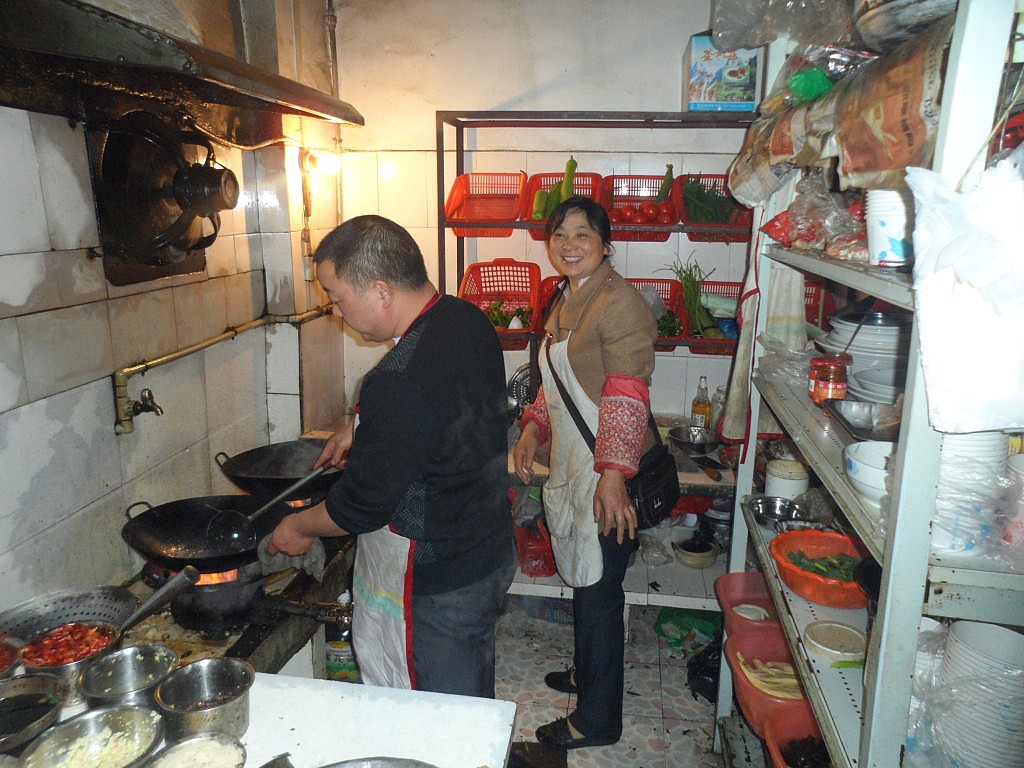 Von all den Errungenschaften begann mein Magen langsam ganz schön zu knurren. Glücklicherweise hatten Wang Kais Eltern gerade damit angefangen, unser Abendessen vorzubereiten. In der kleinen Küche des Restaurants arbeiteten die beiden hart, um für uns ein reichhaltiges Menü zu zaubern. Innerhalb von gerade einmal zehn Minuten landete ein dampfender Topf nach dem anderen auf unserem Tisch. Da die Familie ursprünglich aus der Sichuan-Provinz nach Wuha übergesiedelt war, befürchtete ich schon, mir mal wieder ordentlich den Gaumen zu verbrennen, doch auch wenn ich den Schweinemagen etwas gewöhnungsbedürftig fand, entpuppte sich der Rest als wahrer Gaumenschmaus. Insbesondere der reichhaltig gewürzte Fisch trug dazu bei, dass ich gar nicht so recht wusste, wie ich den Eltern meinen Dank aussprechen sollte, denn immerhin hatten die soeben jemanden gratis bekocht, den sie vorher noch nie getroffen hatten!