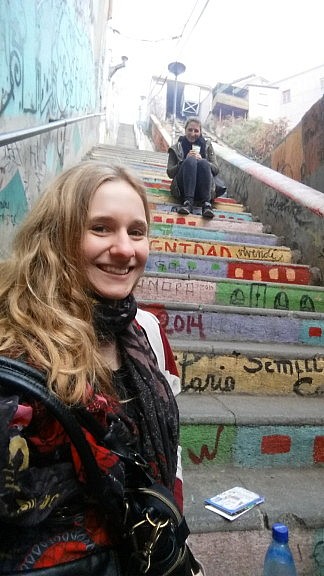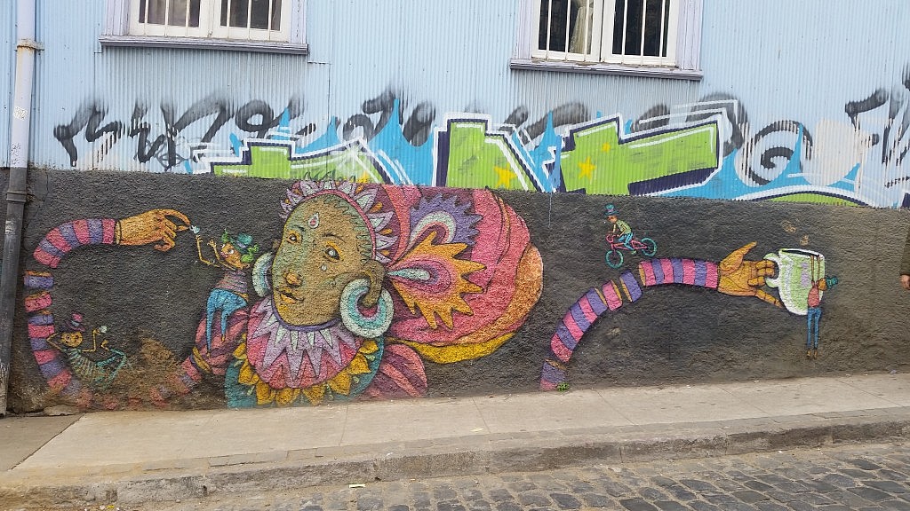 Am Samstag, den 27.06., sind wir zu Fuß durch die Stadt gelaufen und haben die Graffitis angeschaut und die Atmosphäre der Stadt genossen. Bei unserem Bummel bemerkten wir allerdings nicht, dass wir auf einmal nicht mehr im typischen Touri- Viertel waren. Bewusst wurde uns dies erst, als und der Postbote ansprach, was wir denn hier wollen und wo wir hin wollen. Er sagte uns den kürzesten Weg zurück zur Hauptstraße und riet und dort möglichst zügig hin zu gehen, da es in dem Viertel nicht ungefährlich sei. Ups, so war das nicht geplant. Einfach so durch die Stadt schlendern ohne Stadtplan ist nicht die beste Idee in Südamerika. Aber wir haben ja Glück gehabt. Am Nachmittag haben wir uns das Haus von Pablo Neruda in Valparíso angeschaut. Dieses erstreckt sich über 5 Etagen und mir sind sofort die Ähnlichkeiten zu seinem Haus auf der Isla Negra aufgefallen, doch das hat mir doch noch besser gefallen. Von seinem Haus hat man einen wunderbaren Blick über Valparíso und den Hafen, den wir allerdings wegen Nebel nur erahnen konnten.
