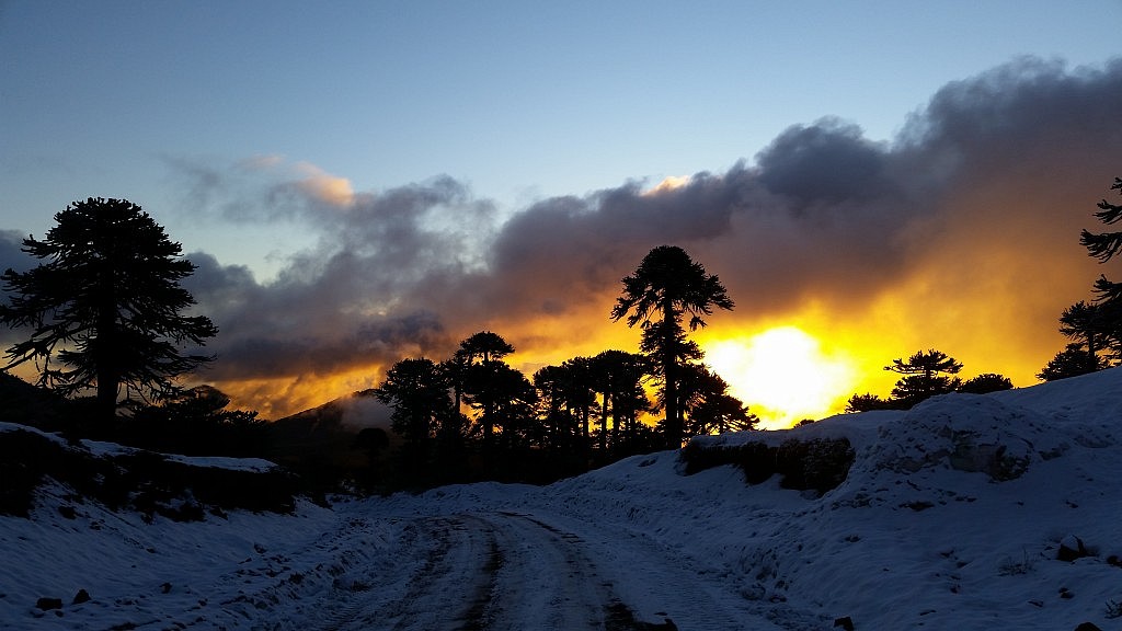Abends machten wir mit den Kindern eine Nachtwanderung durch den Schnee. Das war wirklich wunderschön, zumal wir teilweise ohne Lampen gehen konnten, da das Licht vom Mond auf dem Schnee hell genug war. Ich liebe die Natur von Chile einfach. Zwischen Araucarien durch den Schnee stapfen und dabei nichts hören, abgesehen jetzt mal von den zwanzig Schülern und Schülerinnen, aber keine Autos, keine Alarmanlagen, keine jaulenden Hunde, herrlich!
