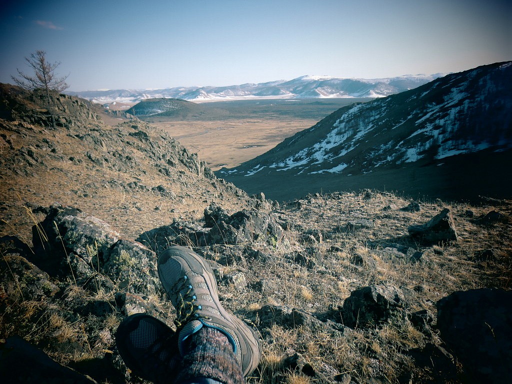 Im Hintergrund sieht man den Khorgo- Vulkan