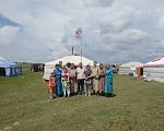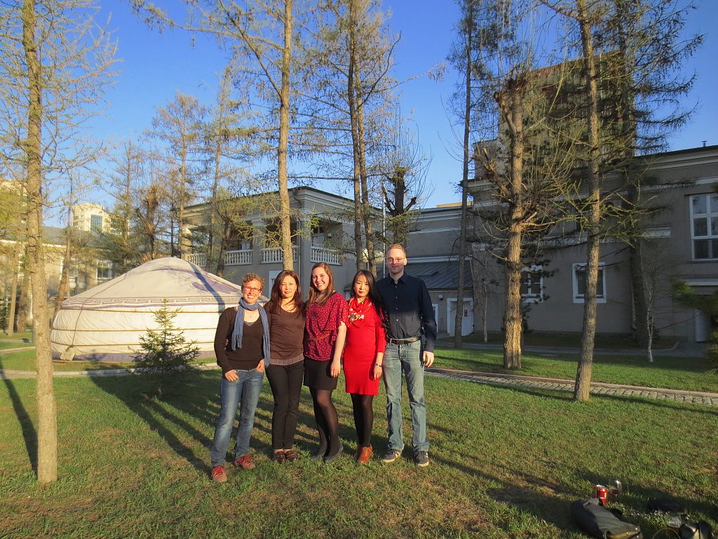 Tuja, Oyu und ich an unserem Stand der Schule Nr. 1Vor der Dienstjurte des Botschafters