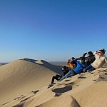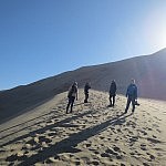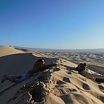 Runter geht’s wie immer schneller als hoch! Der Spaßfaktor ist jedoch kaum zu toppen! Wir tollen in dem tiefen Sand wie verrückte Hühner zurück zum Auto. Kommentar des Fahrers an einem nächsten Tag war dann: „Heute seid ihr bitte nicht so laut wie gestern, als ihr die Düne herunter gekommen seid!“ Uuuups! Was solls. Wir hatten Spaß!