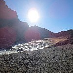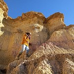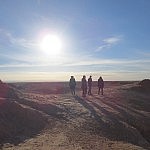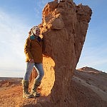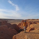 Nach einer leckeren Stärkung- Tseegi und unser Fahrer haben eine däftige Suppe für uns zubereitet, machen wir uns auf den Weg zum Ulaan Ereg. (Rote Klippen). Der Anblick des Sedimentgesteins, welches durch die Sonnenanstrahlung sehr rot erscheint, fühlt sich für mich an, als laufe ich über den Mars. Natürlich, ich war noch nicht da, und wer weiß wie es dort aussieht. Aber wer kennt das nicht. In jedem unserer Köpfe liegt ein Bild, vielleicht ein völlig falsches oder verzerrtes, wenn wir an verschiedenen Orte denken.