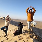 Weiter geht die Reise nach Bayanzag. Einem Gebiet, welches durch Sedimentgestein geprägt ist. Nach der Ankunft verbringen wir ein wenig Zeit in dem sogenannten Saxaulwald. Einem Trockenwald, welcher nur in Zentralasien vorkommt. Die Bäume sind sehr interessant geformt und außer uns und einigen Mausarten wahrscheinlich kaum ein Lebewesen vorzufinden. In dieser Stille sind wir wieder auf der Suche nach unserer inneren Mitte.