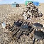 Nach der Ankunft bei der Familie, wo wir übernachten würden, wurden wir natürlich- wie üblich- zu einem Milchtee in die Familienjurte eingeladen. Diesmal war es jedoch kein gewöhnlicher Milchtee (schwarzer Tee, Salz, (Kuh-)Milch), es war Milchtee mit Kamelmilch. Nie zuvor hatte ich Kamelmilch getrunken. Warum auch? Aber bisher der leckerste Milchtee den ich in meinen 8 Monaten Mongolei trinken durfte. Auch gab es Kamelmilch- Airag (gegorene Stutenmilch- gewöhnlich von Pferden), auch sehr lecker. Aufgrund eines süßlichen Geschmacks nicht ganz so ungewöhnlich wie die gegorene Pferdemilch.