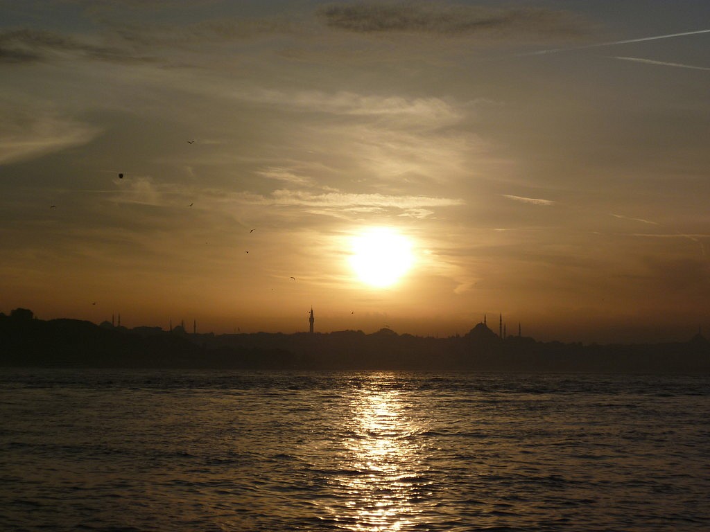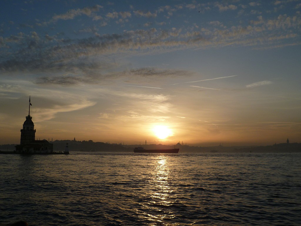 Mein persönliches Hightlight war dann der Sonnenuntergang mit Blick auf die europäische Seite. Bis Mittwoch war hier in Istanbul noch Kaiserwetter, wie wir in Deutschland sagen würden. Hier müsste ich es dann wahrscheinlich Sultanwetter nennen. Es war durchgehend über 20 Grad, der Himmel trug keinen Wolken und die Sonne schien denn ganzen Tag lang. Das bin ich Mitte Oktober natürlich nicht mehr gewohnt, deswegen war es umso schöner. Dementsprechend schön war auch der Sonnenuntergang, den ich mir in Üsküdar (ein Stadtteil auf der asiatischen Seite) angeschaut habe. Mit Blick auf den Mädchenturm (kız kulesi) färbte sich der Himmel erst in ein zartes orange und dann in ein immer stärker werdendes rot. Mit einem Glas çay in der Hand, konnte ich die Welt um mich herum einfach vergessen.