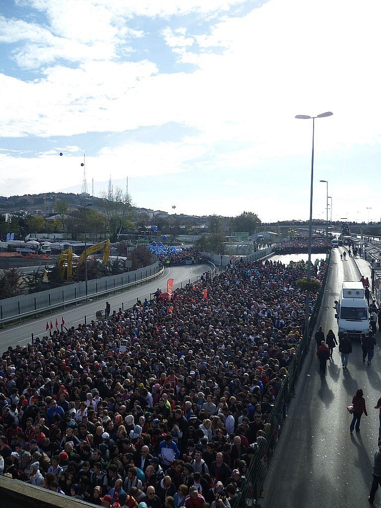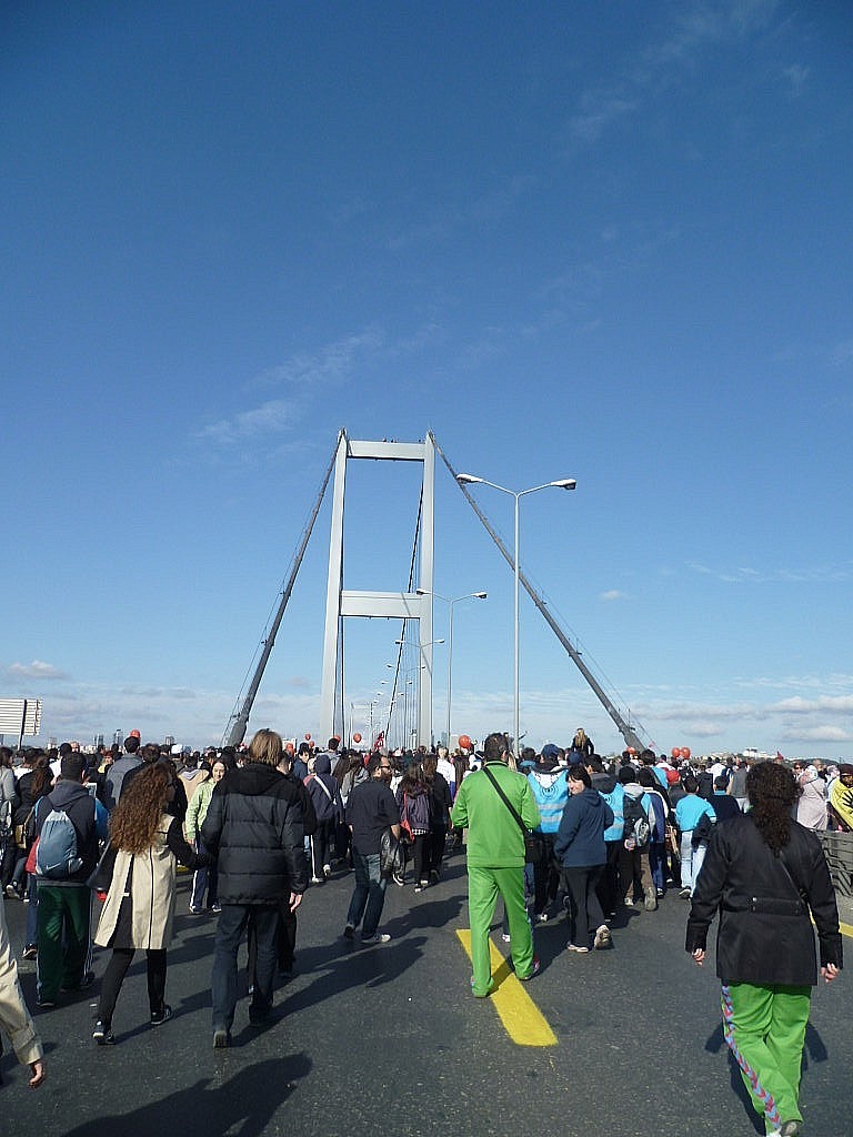 Am 17. November fand in Istanbul der Marathon statt und dabei gab es auch die Möglichkeit an dem sogenannten Volksmarathon teilzunehmen. Dabei hat man die Chance über die Bosporus-Brücke zu laufen, die man sonst nur mit dem Auto befahren kann. Deswegen habe ich mich mit ein paar Freunden an dem Sonntag um 9 aufgemacht und bin die 8 Kilometer spaziert. Da aber noch sehr viele andere Menschen mitlaufen wollten, hat sich der Start ein bisschen verzögert. Die Stimmung aber war toll, von klein bis groß waren alle dabei und glücklich, als sie das Ziel erreicht haben. Der Blick von der Brücke war toll, auch weil wir tolles Wetter mit strahlendem Sonnenschein hatten. Anschließend haben wir und dann die Kalorien, die wir gerade verbrannt hatten bei einem ausgiebigen Frühstück wieder angefuttert und den Sonntag Sonntag sein lassen.