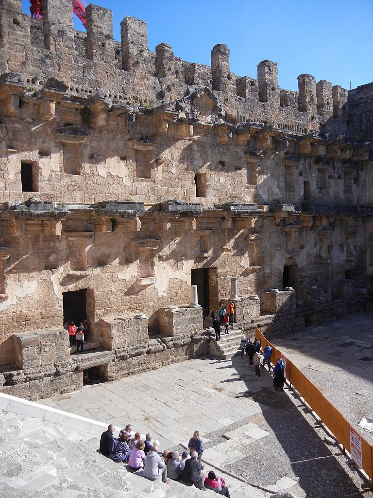 Von Antalya ging es dann in einem Ausflug nach Aspendos. Schon in der Antike war dies eine Metropole. Dort lebten damals schon 20 000 Menschen und so gab es auch ein Theater für 15 000 Zuschauer. Hier gab es dann schon mehr Touristen, aber trotzdem konnte ich das Gelände ungestört und in Ruhe erkunden. Sehr beeindruckend war das Aquädukt, das damals eine Ebene von 2 km überbrücken musste.