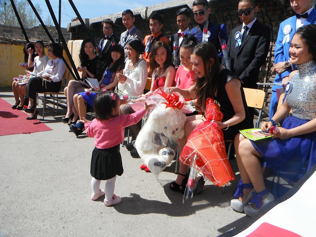 Heute war der letzte Schultag der 11. Klasse, die damit ihre Schulzeit beendet. An dem Tag fand kein regulärer Unterricht statt. Um 10 Uhr sollten wir uns alle draußen versammeln, weil eine kleine Feier für die Klasse veranstaltet wurde. Natürlich begann der Festakt erst um 10:45, aber was solls. Die Schüler der Abschlussklasse saßen an der einen Seite der Bühnen und bekamen ein Programm anlässlich ihres Ehrentages geboten. Jede Klasse sollte etwas aufführen. Schon Tage vorher waren alle Schüler nur noch mit den Proben für die Auftritte beschäftigt, wodurch der restliche Unterricht etwas leiden musste.