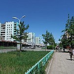 Am nächsten Morgen um 6.00Uhr wurden wir von den Zugbegleitern geweckt um uns für die Ankunft in Erdenet bereit zu machen. Am Bahnhof wartete ein Lehrer der Schule, die wir heute besuchen sollten, um uns zur Schule zu bringen. Denn der Grund unseres Besuchs war die Auswahl von zwei Deutschlehrern, die ab nächstem Schuljahr dort mit dem Deutschunterricht beginnen werden. Ursprünglich sollten wir auch schon Schüler auswählen, die sich dafür eignen, aber da diese sich weigerten im Juni noch zum Unterricht zu erscheinen, wurde das Auswahlverfahren auf den August verlegt. Nachdem die erste Bewerbungsrunde vorbei war, wurde unsere Hilfe nicht mehr gebraucht und wir verbrachten die restliche Zeit unseres Aufenthalts um die Stadt zu erkunden. Im Gegensatz zu Ulaanbaatar sieht es in Erdenet viel grüner aus. Die Straßen sind von Bäumen geziert und es gibt sogar einen winzigen Park mit einem Springbrunnen. Außerdem ist das Leben dort etwas entspannter. Ich hatte nicht den Eindruck, dass die Leute ständig nur von einem Ort zum anderen hetzen. Die Luft ist nicht so staub- und smogbelastet und die Autos hielten sogar, als wir die Straße überquerten!! Erdenet ist mit 100.000 Einwohnern die drittgrößte Stadt der Mongolei. Sie wurde erst in den 1970er Jahren für die Mitarbeiter der nahe gelegenen Kupfermine (laut Wikipedia die viertgrößte Kupfermine der Welt!) gegründet. Aufgrund der Arbeit in der Mine zog es auch viele Russen nach Erdenet, wodurch das Stadtbild dementsprechend geprägt wurde.