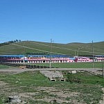 Als wichtigen beruflichen Aufenthalt getarnt, ging es am Sonntag für mich und zwei andere deutsche Mädels mit dem Zfa Berater und seiner Frau nach Erdenet, eine kleine Stadt nordwestlich von Ulaanbaatar. Und zwar mit dem Zug!! Abends um 19.30Uhr versammelten wir uns auf dem Bahnhof und machten es uns (die drei deutschen Mädels) eine Stunde später in unserem vierer Coupé gemütlich. Es war zwar etwas eng mit den vier Betten und dem Tisch, aber kuschlig. Da wir anscheinend alle dachten wir würden während der 12h Zugfahrt verhungern, hatten wir alle riesige Fresspakete mitgebracht, die dann sogar noch die Rückfahrt überlebten.. So waren wir also die meiste Zeit der Zugfahrt mit Essen und aus dem Fenster schauen beschäftigt. Die Landschaft war wunderschön. Überall kleine Hügel, Schaf- und Ziegenherden und alles war mit einem satten Grün getränkt.