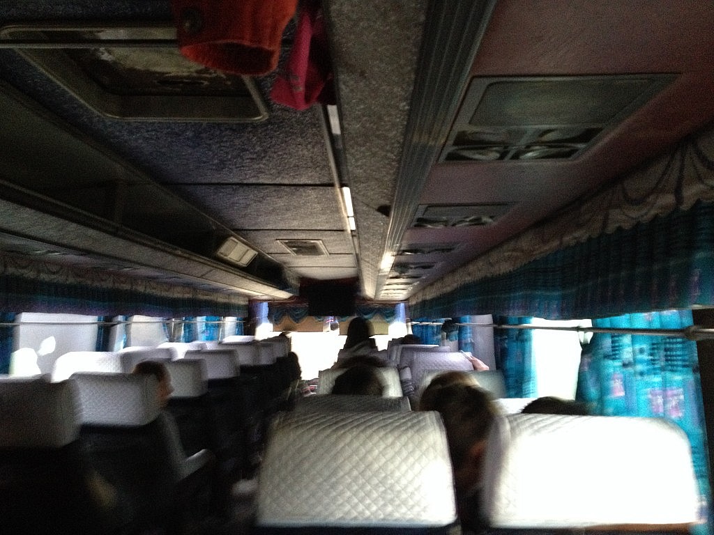 Geschlafen wurde in typischen Jugendherbergshochbetten. Obwohl ich mich eher zu den Schülern orientierte, weil es für mich keine Aufgaben gab, wurde ich von der Lehrerin angewiesen in ihrem Zimmer zu übernachten. In den Betten erwartete mich die selben Rollmatratzen, die wir auch schon in der transibirischen Eisenbahn testen durften. Schade, ich hatte gehofft vielleicht zwei Nächte in einem bequemeren Bett, als meinem Schlafsofa zu verbringen. Auch der Trick, der Lehrerin, einfach zwei der Matten übereinader zu legen , half kaum. Ich bin betttechnisch echt verwöhnt. Zum Glück hattte ich eine richtige schöne Flauschedecke. Das machte alles besser. Die hätte ich aber eigentlich garnicht gebraucht. Meine Zimmernachbarin entpuppte sich als eine Freundin von Saunazimmern die nach Heizung riechen. Nach dem ich in der ersten Nacht lange nicht einschlief, weil es so warm war und die Heizung im Minutentakt geräuschvoll nachheitzte, machte ich sie in der folgenden Nacht einfach heimlich aus. Waren ja auch noch sieben Grad draußen, da braucht man doch keine 26 Grad in der Bude.