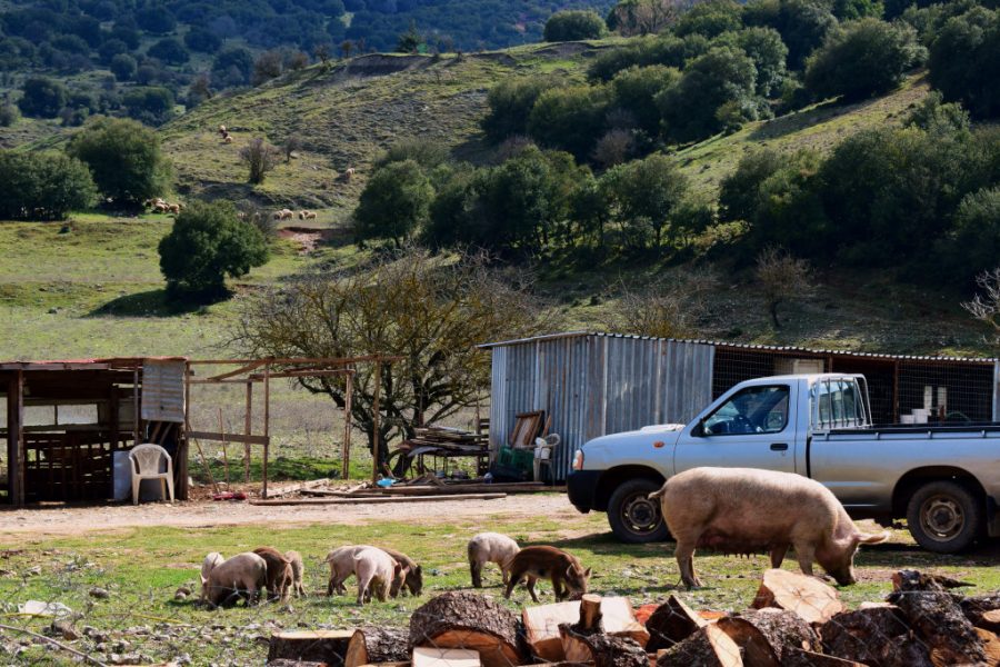Einen Monat ist es jetzt her seit wir hier sind, ja sogar schon einen Monat seit wir die Feuerwerksschüsse vor unserer Wohnung beobachtet haben. Wir haben mehr über die Menschen um uns herum erfahren: Dem Pitamann dessen kleiner Sport-Audio ein Firmenwagen ist und Giorgios dem Förster, der vorerst nur sechs Monate im Geopark arbeiten sollte und nun seit mehr als 12 Jahren hier arbeitet zusammen mit Christos, der bis zum Nachmittag durch den Geopark herumfährt. Genauso wie Maria, die in Kalavryta wohnt. Im Laufe der Zeit haben wir ein paar Orte des Geoparks sehen können gemeinsam mit dem Professor und seinen Mitarbeiterinnen der Universität Patras, darunter auch den zweitausend Jahre alten Weinbaum wobei wir da Giorgos sogar zuvor gekommen waren. Ich habe herausgefunden, dass das Café gegenüber von uns den geheimnisvollen Namen „Schule” trägt, da es direkt neben einer Schule liegt. S-chole-io klang schöner als ich noch nicht seine Bedeutung kannte. Seit ein paar Tagen sehe ich neben kleineren Kindern, die abends auf dem Kirchplatz Inline-Skates fahren und Eis essen, auch Jugendliche, die mit Rücksäcken morgens vor dem Café stehen und am Nachmittag über die Hauptstraße zurück nach Hause gehen. Das Dorf ist so ausgehöhlt, wenn es nicht Abend ist oder Mittag im Dorfzentrum. Oft genug habe ich mich schon gefragt, wo die Menschen sind und wie viele überhaupt wirklich hier leben. Wie laufen die älteren Dorfbewohner die steilen Gassen hinauf? Zum Glück werden sie oft begleitet, von ihren Kindern nehme ich an. Bei meiner Wanderung nach Agia Lavra ein paar Tage nach dem Nationalfeiertag traf ich auf einen Bauern, der mir aufgeregt seine Puten und Schweine und Ferkel und Hunde und Katzen zeigte nachdem ich ein Foto von seinem Hof geschossen hatte. Wir hatten uns unterhalten wollen, aber nachdem ich sagte, dass ich kein Griechisch sprach, erzählte er mir trotzdem leidenschaftlich auf Griechisch, wie er aufgrund der Pandemie nicht mehr richtig verkaufen konnte. „Den pirasi” verstand ich und damit war mir seine gesamte Einstellung auf die Dinge bewusst: „Macht nichts” schwenkte er mit der Hand. Wenige Wochen später erkannte ich ihn am Café stehen und rauchen.