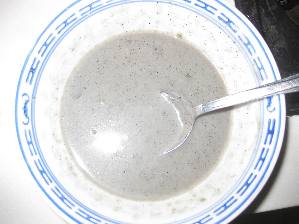 Dieses schmackhaft aussehende Gericht ist schwarzer Sesamporridge. Das musste ich unbedingt mal probieren. Schmeckt nicht schlecht, aber ist nicht so mein Ding.