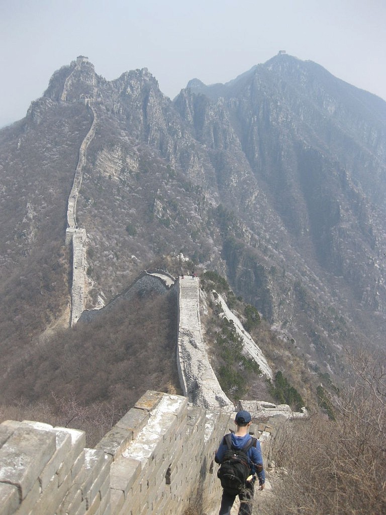 Letzten Samstag war ich zum zweiten Mal auf der Chinesischen Mauer und es war wieder großartig! Von Peking aus kann man zu verschiedenen Abschnitten der Mauer fahren. Der nächste ist Badaling, dort fahren alle Touristen hin, da es sehr schnell zu erreichen ist. Ich war selbst nicht dort, aber es soll sehr voll sein und ist komplett restauriert. Sprich, die Mauer besteht einfach aus perfekt gemauertem Steinboden und Treppen.