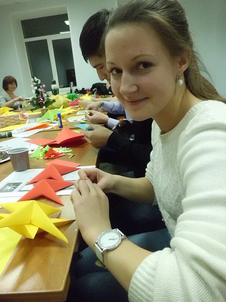 Kaum zurück in Tomsk stand schon wieder Arbeit vor der Tür. Ich kam Donnerstag morgens an und am Freitagabend wurde schon für den 1. Advent gebastelt. Wir hatten eigentlich mit 20-25 Leuten gerechnet im Endeffekt kamen 8. Naja, kann man ja schon froh sein, dass überhaupt die kamen. Es wurden Sterne und Adventskalender gebastelt. War trotzdem schön und obwohl ich ein absoluter Bastelmuffel bin, fand ichs gut…