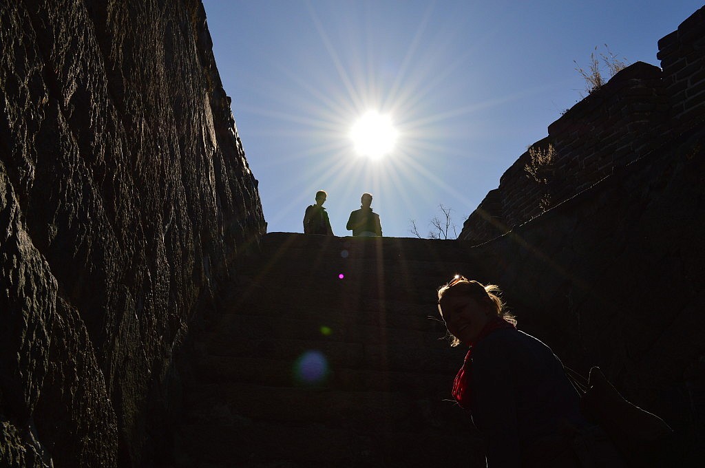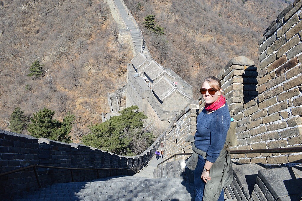 Romy wollte unbedingt etwas westliches zum Abendessen, nur leider war ich an der ersten und wohl eben auch letzten Pizzaria vorbeigelaufen und so mussten wir ziemlich lange und fiel spazieren gehen, bevor wir letztendlich doch noch ein kleines und feines Cafe fanden. Ich gebe euch einen Rat… wenn ihr Hunger habt und ihr möchtet nichts Scharfes essen, bestellt nicht „Kung Pao Chicken“!!! Ich musste beim ersten Bissen sofort an Michael Mittermeier und das „Operiert mir das Chilli raus“ denken. Es war das erste von wenigen weiteren Malen, dass ich in China wegen des Essens weinte!!! Abgesehen von der Tatsache, dass ich bei der Suche der Metrostation voll in die falsche Richtung gelaufen war, ging dann aber doch noch alles gut und wir kamen fertig und erfüllt um 22 Uhr abends am Hostel wieder an. Ich musste dringend ins Zimmer, um mich bettfertig zu machen, aber Romy machte für uns den „Mauertrip“ für den nächsten Tag fix! Obwohl man sich eigentlich bis 20 Uhr anmelden musste, durften wir noch mitfahren und sollten eine große Überraschung erleben.