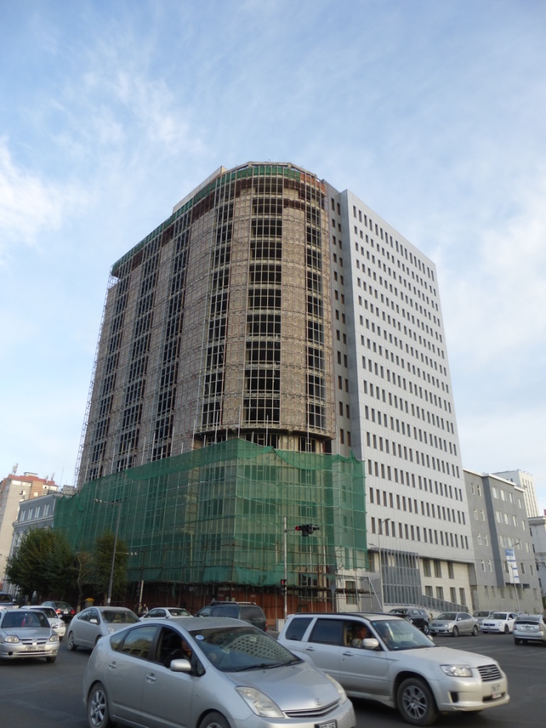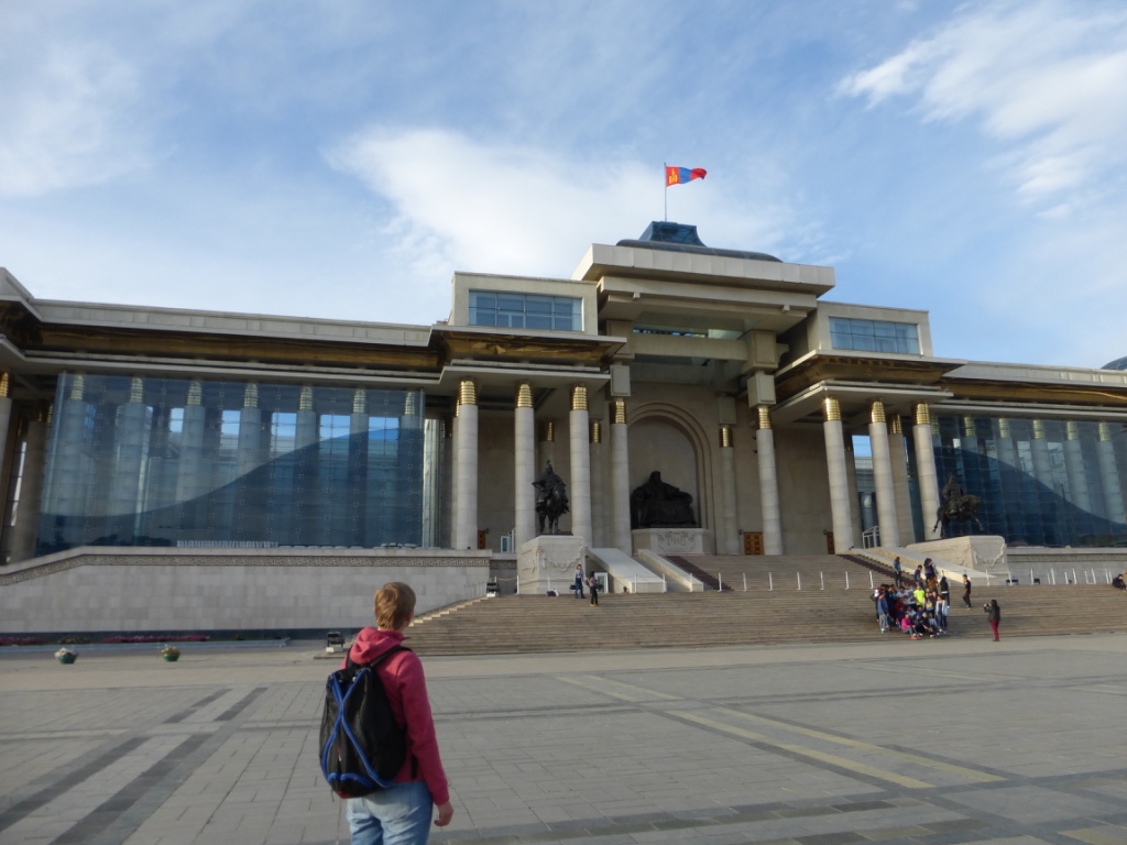 We went out of the city (eastern direction), sounds easy, but even on a Saturday is a lot of traffic in the city and now I know how roundabouts work like in Mongolia 😀 You get in when you think you wont be hit by a car and when you want to get out you stop in the middle and wait, blinking that you want to get out and wait again until you think you wont get hit – creepy. But yeah I am still alive and after getting nearly hit several times we went out of the city. The street out of the city remembered me a bit of Australia: just a loooooong street and nothing around, ok some mountains but more or less brownish steppe, autumnal-like. It was a bit bumpy, luckily no swerves… otherwise….. 😉