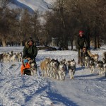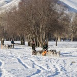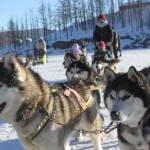 Then we had lunch break in a ger, but too short to get really warm again. Straight after lunch on a full stomach we were off to the frozen river to do the dog sleigh tour.