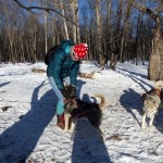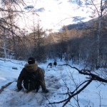 Then we had lunch break in a ger, but too short to get really warm again. Straight after lunch on a full stomach we were off to the frozen river to do the dog sleigh tour.