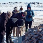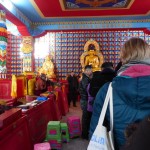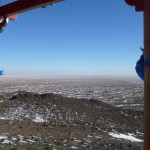 Last stop was the “Bayanzurkh Uul“. On top of this hill is a Ovoo. Just men are allowed to go up to the top. Us girls weren’t to sad about it because it was not just cold but also very windy. The wind felt like thousands of grains of sand in the face and after a few minutes the cheeks got frozen. We went up to a temple, where we immolated cookies and aruul. Some goats were in front of the temple and I tried to let them not into it. But suddenly in an unnoticed moment one of the goats got into the temple and pitched into the whole cookies-aruul stuff. Finally ,Tseegii had to carry the goats out of the temple. Funny moment!