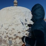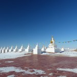 Sunday was the actual sightseeing day. Because the museum in Sainschand was closed we went straight to a monastery sight called “Khamariin Khiid”. This monastery is around 40km south of Sainschand and was founded in 1820. In the 1930s it was destroyed and re-constructed. This place was also admired as “energetic center” and site of pilgrimage. It is closely connected to the meditation traditions of the monks. In former times around 500 Lamas lived here. The actual energetic center was calles “Shambala” and consists of a bell tower and 108 Stupas (108 is a hollow number in Buddhism religion). There are also meditation caves in immediate environment.