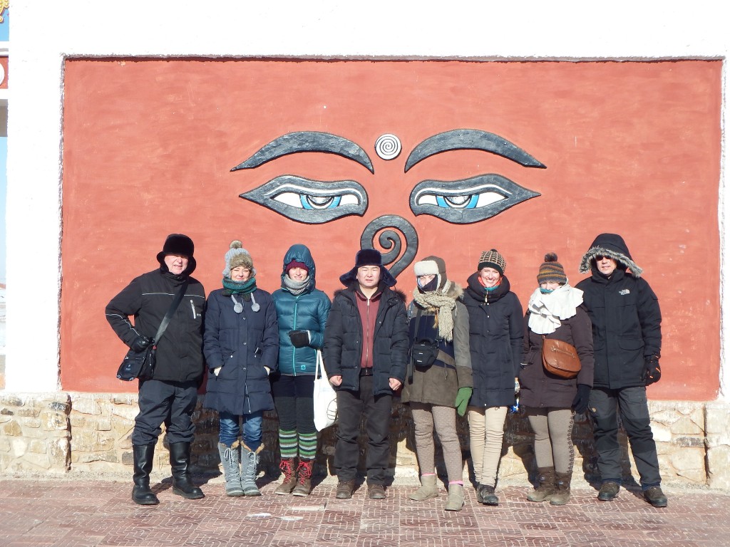 As most of you might know it is winter in Mongolia and not just one of the relaxed weeks with just minus 25… no…. around this time is the coldest period of the year which means temperatures below minus 35 and more. Nevertheless this does not shock us to plan a trip to Sainschand, a city founded in 1931, which is around 450km southeast from UB. We means, Stefan, a german teacher from School 38, Johannes, who just arrived for a business trip and has never been to Mongolia, Jessy, volunteer from school 38, Kirsten, volunteer from school 1, Denise, intern at the GIZ, Sigrun, the wife of Christoph who is teacher at the Goethe School and me. Not to forget Tseegii as our guide and Naraa our driver, whom Kirsten, Jessy and me welcomed with a joyful “Naraaaaaaa”! We all had to fit in the lovely Russian bus фургон and then off we go.