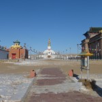 Sunday was the actual sightseeing day. Because the museum in Sainschand was closed we went straight to a monastery sight called “Khamariin Khiid”. This monastery is around 40km south of Sainschand and was founded in 1820. In the 1930s it was destroyed and re-constructed. This place was also admired as “energetic center” and site of pilgrimage. It is closely connected to the meditation traditions of the monks. In former times around 500 Lamas lived here. The actual energetic center was calles “Shambala” and consists of a bell tower and 108 Stupas (108 is a hollow number in Buddhism religion). There are also meditation caves in immediate environment.