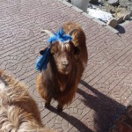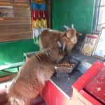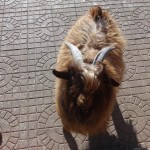 Last stop was the “Bayanzurkh Uul“. On top of this hill is a Ovoo. Just men are allowed to go up to the top. Us girls weren’t to sad about it because it was not just cold but also very windy. The wind felt like thousands of grains of sand in the face and after a few minutes the cheeks got frozen. We went up to a temple, where we immolated cookies and aruul. Some goats were in front of the temple and I tried to let them not into it. But suddenly in an unnoticed moment one of the goats got into the temple and pitched into the whole cookies-aruul stuff. Finally ,Tseegii had to carry the goats out of the temple. Funny moment!