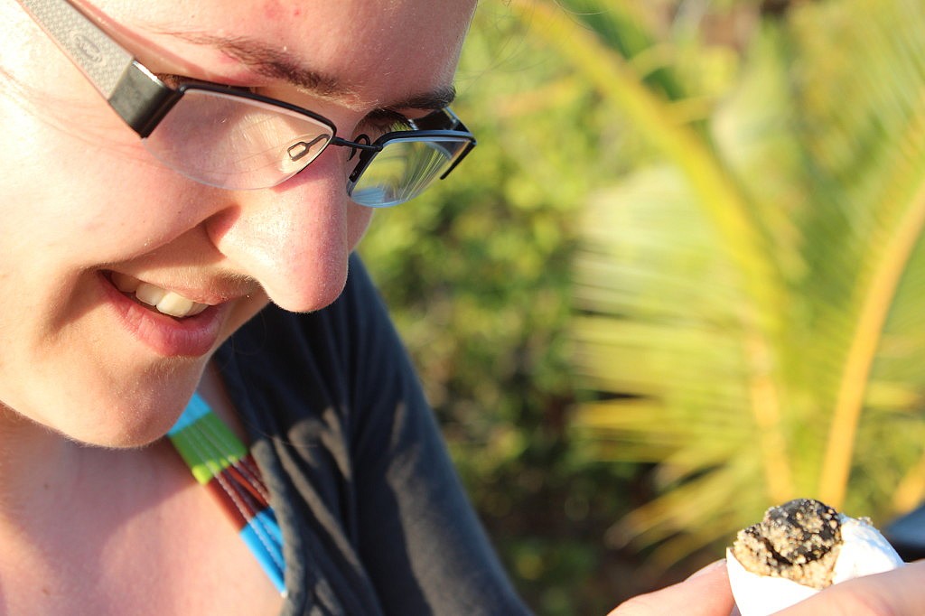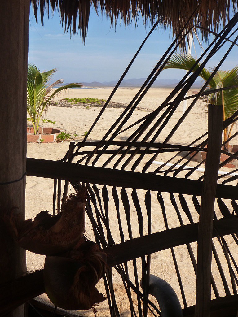 Auch wenn es so scheinen könnte, haben wir in Mayto nicht nur am Strand gelegen. Dort findet sich das „Campamento Tortuguero Mayto“ (auch bei Facebook zu finden). Dies ist ein Camp zum Schutz von Schildkröten. Leider ist grad nicht die Schildkrötensaison und so konnten wir nur Bekanntschaft mit einem nicht überlebensfähigen noch nicht einmal geschlüpften Tierchen machen. Aber das Team dort sind ganz fantastische, liebe Leute, die voller Energie eine tolle Arbeit leisten und die konnten wir ein bisschen unterstützen indem wir mitgeholfen haben aufzuräumen und ein Schutzzaun für die im Sommer kommenden Nester zu bauen.