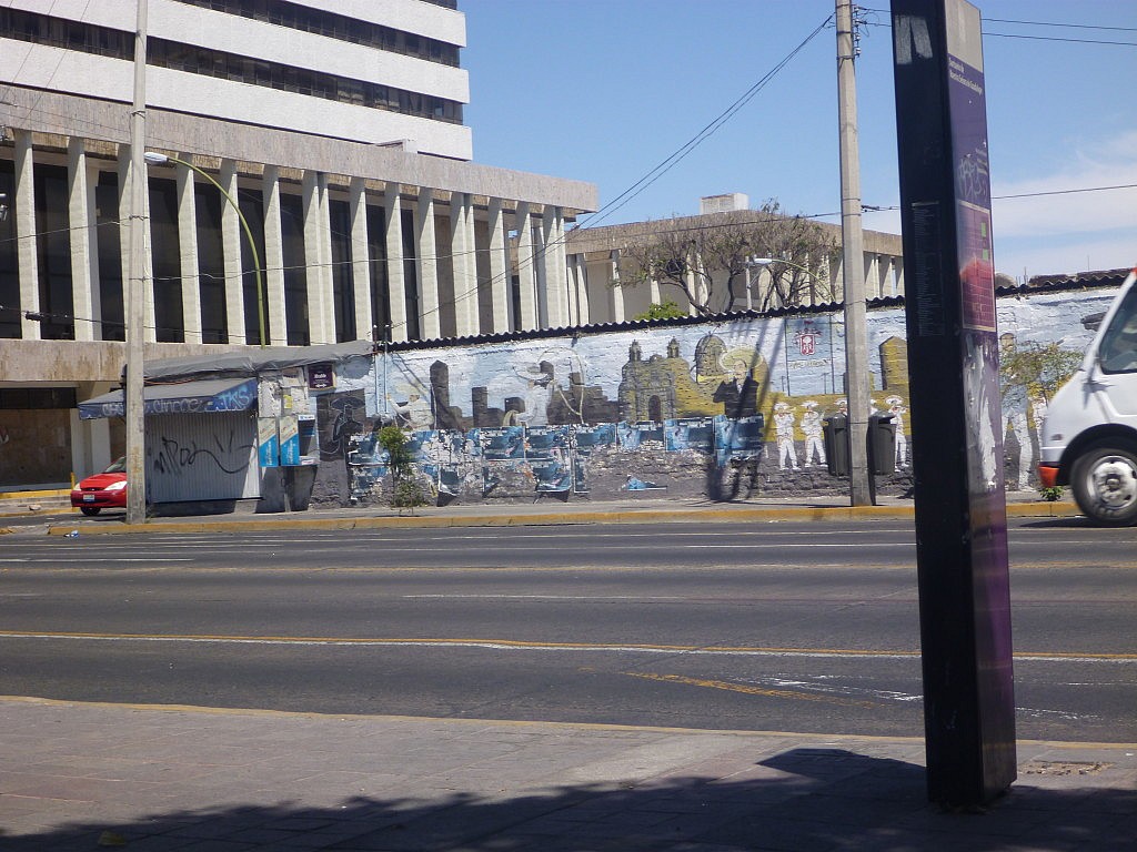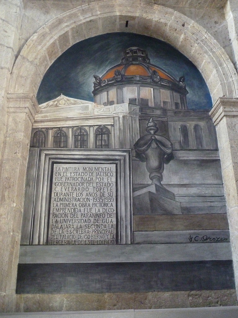 Viele der öffentlichen Gebäude hier wie der Regierungspalast und das „Hospicio Cabañas“ (ein ehemaliges Waisenhaus, jetzt Museum und Kulturzentrum) werden von sogenannten „murales“ geziert. Das sind große Wandmalereien, die in diesem Stil in Mexiko aufgekommen sind und die Szenen aus der mexikanischen Revolution darstellen. Außerdem zeigen sie das häufig sehr kritische Bild, welches die Muralisten von der Gesellschaft hatten. Damals eine Informationsquelle für die Teile der Bevölkerung, die nicht lesen konnten, Ausruck politischer und gesellschaftlicher Meinungen und gleichzeitig auch noch recht dekorativ, also was will man mehr?