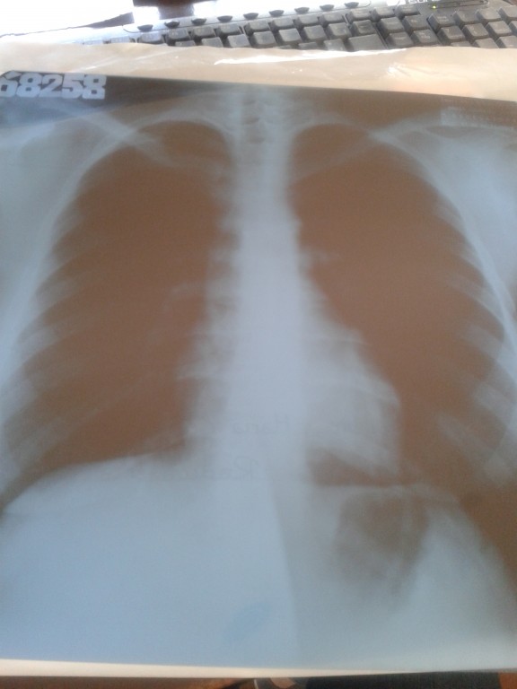 8. mit einer Radiografie seiner Lunge herumspazieren